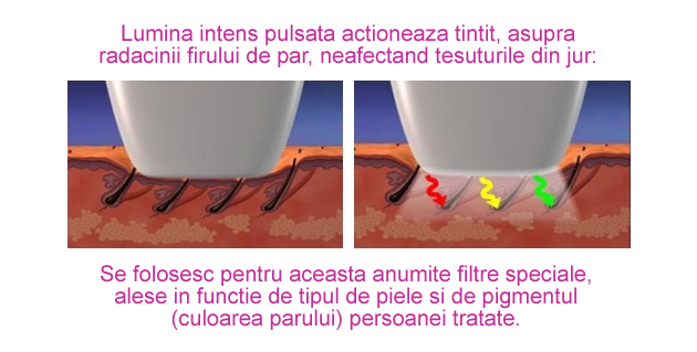 Pe ce principiul funcționează? În momentul când lumina pulsatoare interacționează cu pigmentul din firul de păr și se degajă căldură suficientă acesta se distruge.