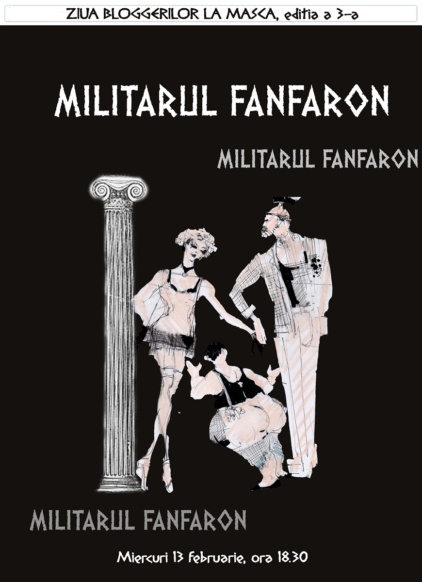 În ajunul sărbătorii preluate de la americani – sfântul valentin – cei de la Teatrul Masca am oferit încă o dată un spectacol de excepție – pentru al treilea an la rând. În avanpremierea avanpremierii bloggerii doritori au văzut piesa de teatru ”Militarul Fanfaron”.