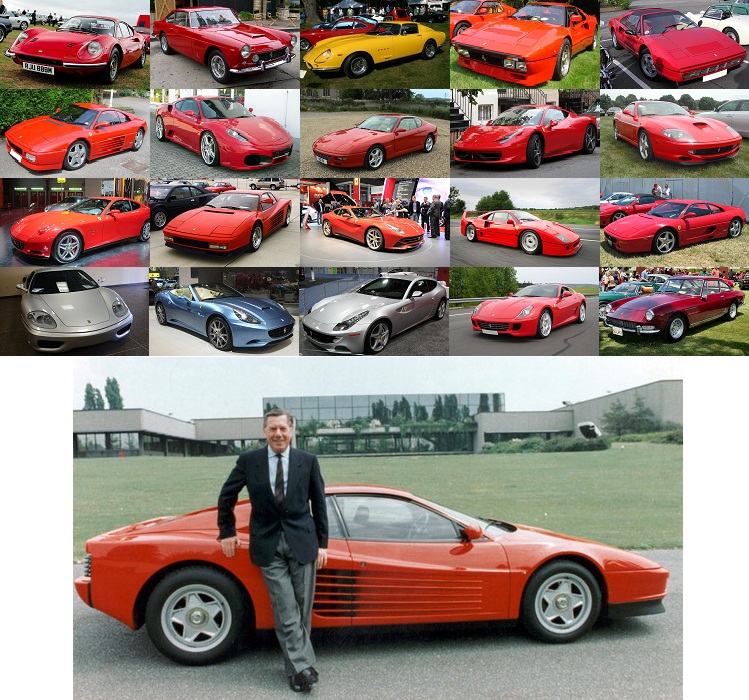 Sergio Pininfarina a colaborat cu mai multe firme producătoare de maşini (Fiat, Alfa Romeo, Peugeot), dar a devenit celebru pentru activitatea sa la Ferrari. Acesta este cel ce a dat viață unora dintre cele mai celebre și frumoase modele de Ferrari – Ferrari 250 (1953), modelele Ferrari America (1950-1960), Ferrari 275 (1964), Ferrari 206 GT (1968), Ferrari 288 GTO (1984), Ferrari Testarossa (1984), Ferrari 328 GTB și GTS (1985), Ferrari F40 (1987), Ferrari 348 (1989), Ferrari Mythos (1989), Ferrari 456 (1992), Ferrari F355 Berlinetta, Spider, GTS, Challenge(1994-1999), Ferrari 550 Maranello și Barchetta (1996), Ferrari 360 Modena (1999), Ferrari 575M Maranello (2002), Ferrari Enzo (2002), Ferrari 612 Scaglietti (2004), Ferrari 599 GTB Fiorano (2006), Ferrari California (2008), Ferrari F430 (2009), Ferrari 458 Italia (2009), Ferrari FF (2011), chiar și ultimul Ferrari F12 Berlinetta, dar și excepționalul Ferrari P4/5 (2006) care este un unicat realizat pentru directorul de film si magnatul James Glickenhaus.