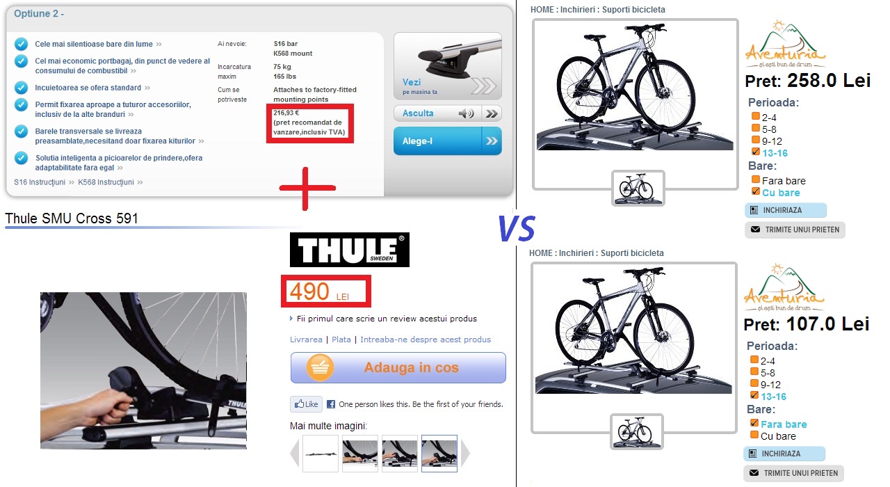 Acum fiecare își face calculul cum este mai avantajos, dar pentru mine care nu folosesc aproape deloc bare transversale și suporți pentru bicicletă prețul mi se pare mult mai convenabil prețul de închiriere, față de cel de achiziție.